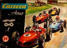 In den darauf folgenden Jahren kamen dann immer zu Weihnachten verschiedene Ergänzungsschienen dazu, wie Überholbahnstück, Rundenzähler, Engstelle/Schikane, Steilkurve 1 und eine Tribüne mit 12 Zuschauern. Von meinen Großeltern gab es eine weitere "Avus" (jetzt in einer blauen Verpackung mit Styroporeinsatz) mit einem weißen Cooper und einem grünen Lotus (auch diese sind heute noch in meinem Besitz und funktionieren nachwie vor).
